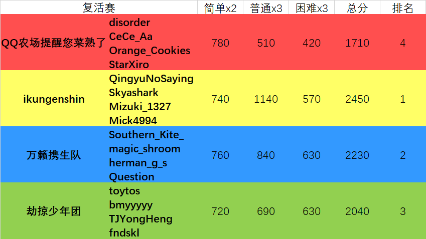ikungenshin(黄)、万籁携生队(蓝)进入决赛